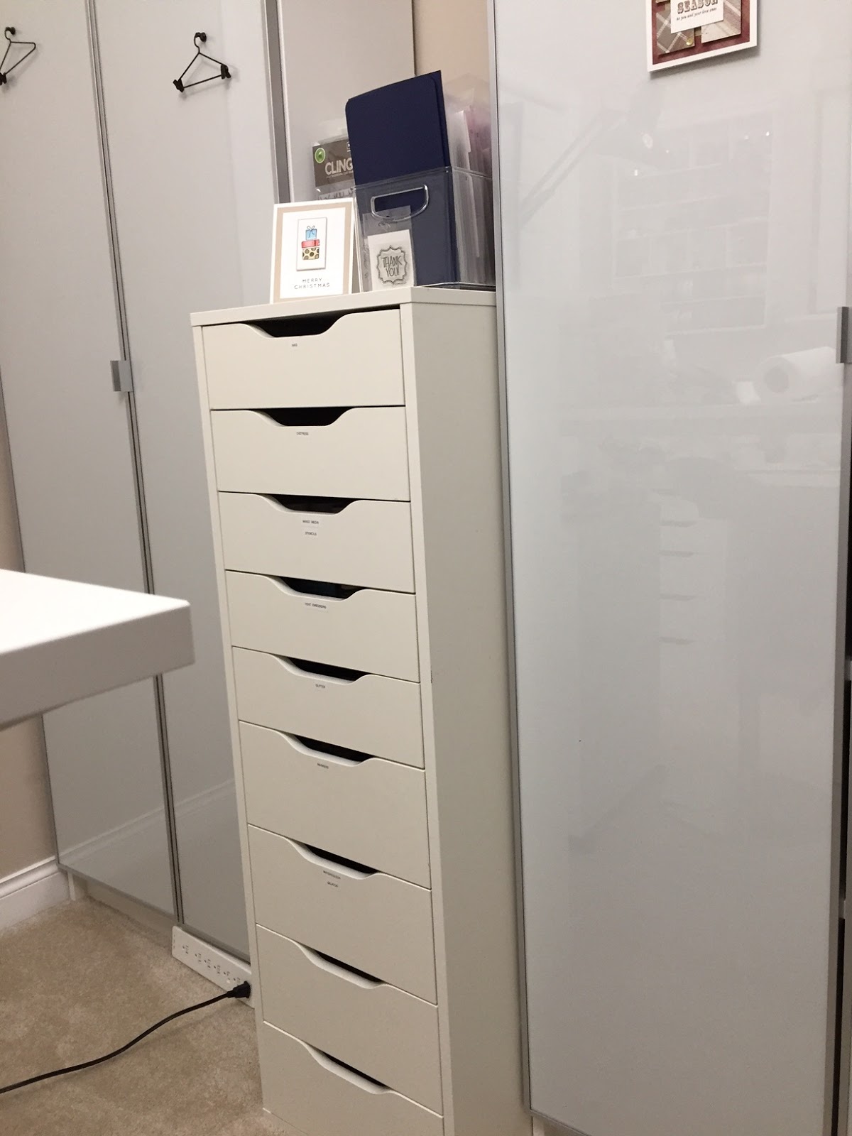 Mid way, my cube ink pads. Cardstock, envelops and adhesive are next. I buy my adhesive, envelopes in bulk, same with the cardstock for my card bases.